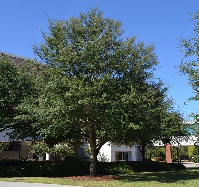 Defining Characteristic: Prolific brown acorns fruiting in Fall or Winter. Furrowed, blocky bark.